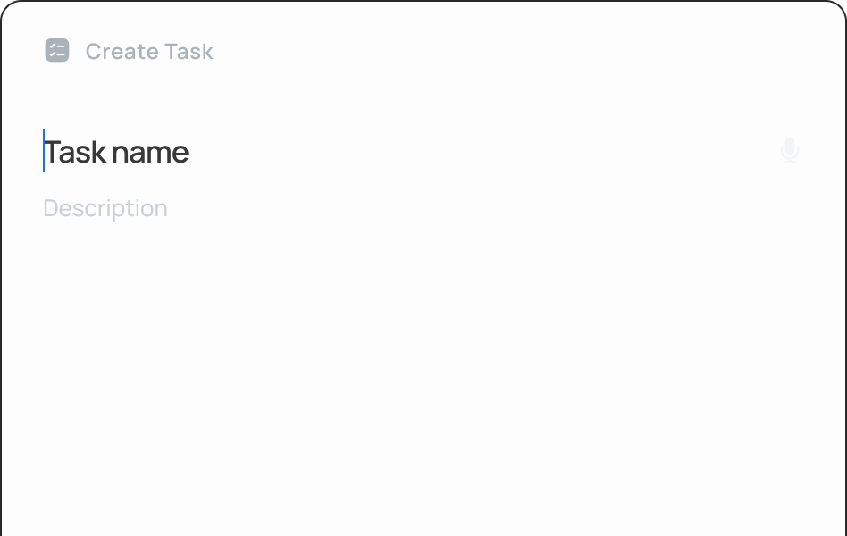 Describe what you need to do to our AI assistant (by text or voice) and she’ll turn it to a task and auto-schedule it.