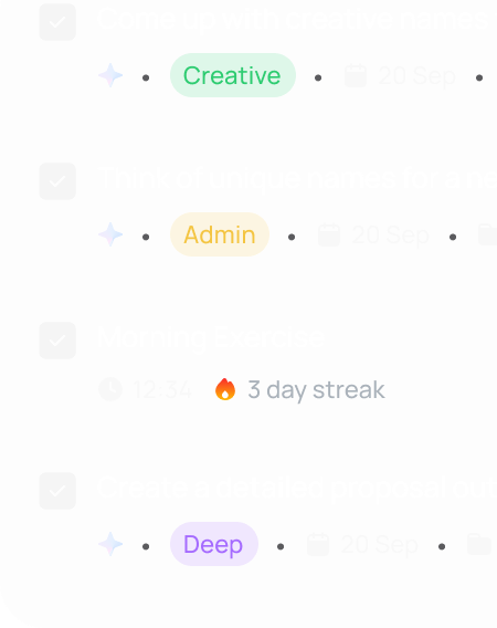 Every task has a type: Deep, Creative, Admin, or Personal. rivva uses this to match work to the right energy window. Focus-heavy tasks during peaks, lighter ones during dips.
