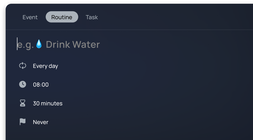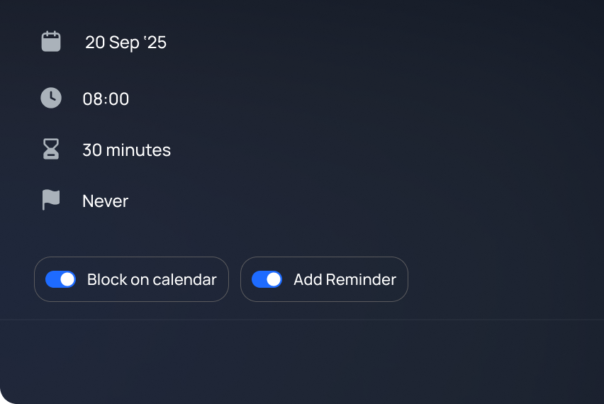 Routines are the habits that hold everything together. Morning gym, evening reflection, reading before bed. Add them to rivva and track your streak so you don’t skip routines when work gets busy.